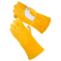 Reinforced palm & thumb yellow color lined cow split leather hand protective gloves